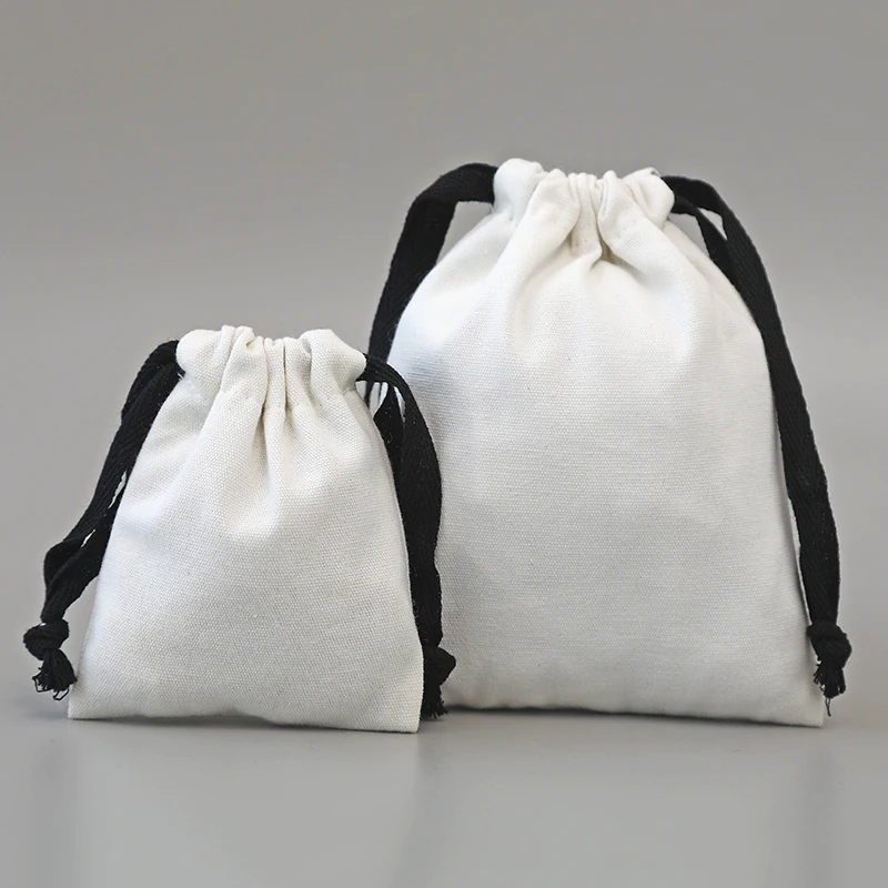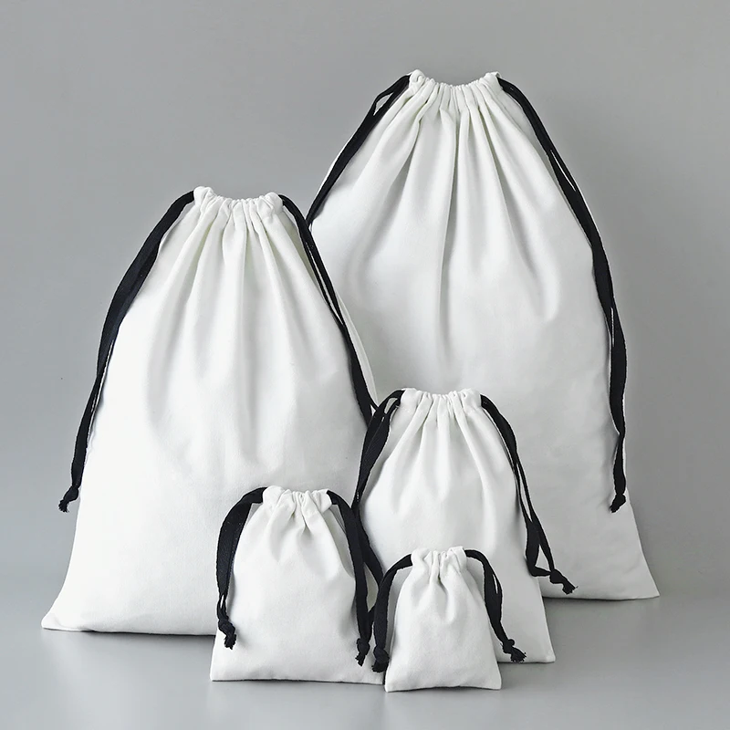 Zhuangshijie White Canvas Cotton Bags with Black Drawstring Christmas Gift Wedding Candy Package Pouch Big Size Dustproof Sacks