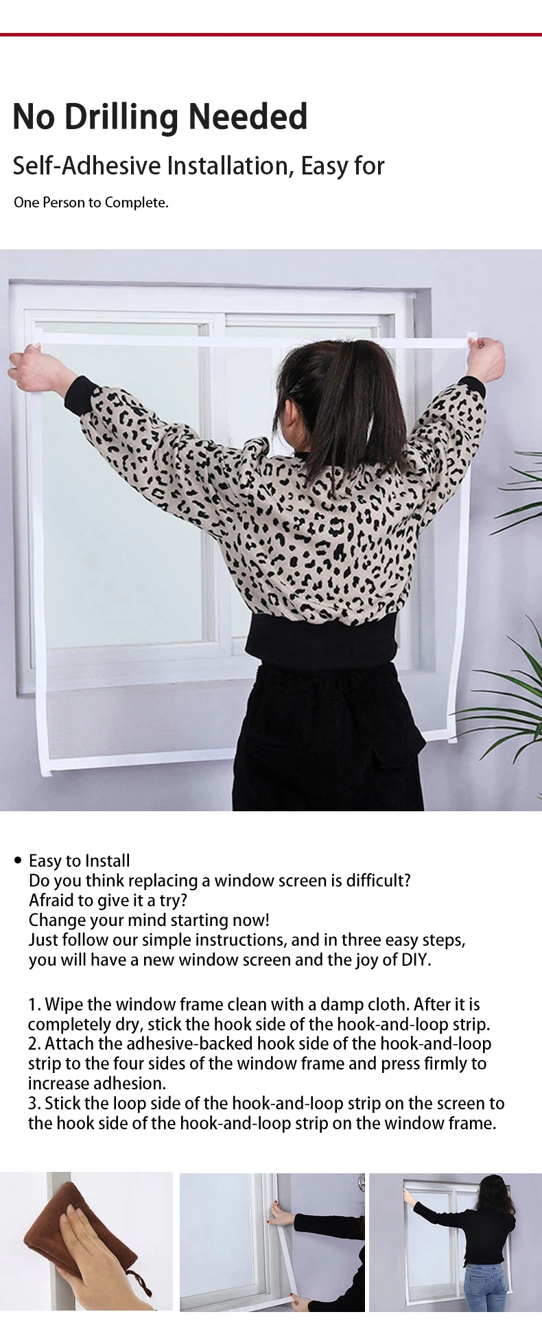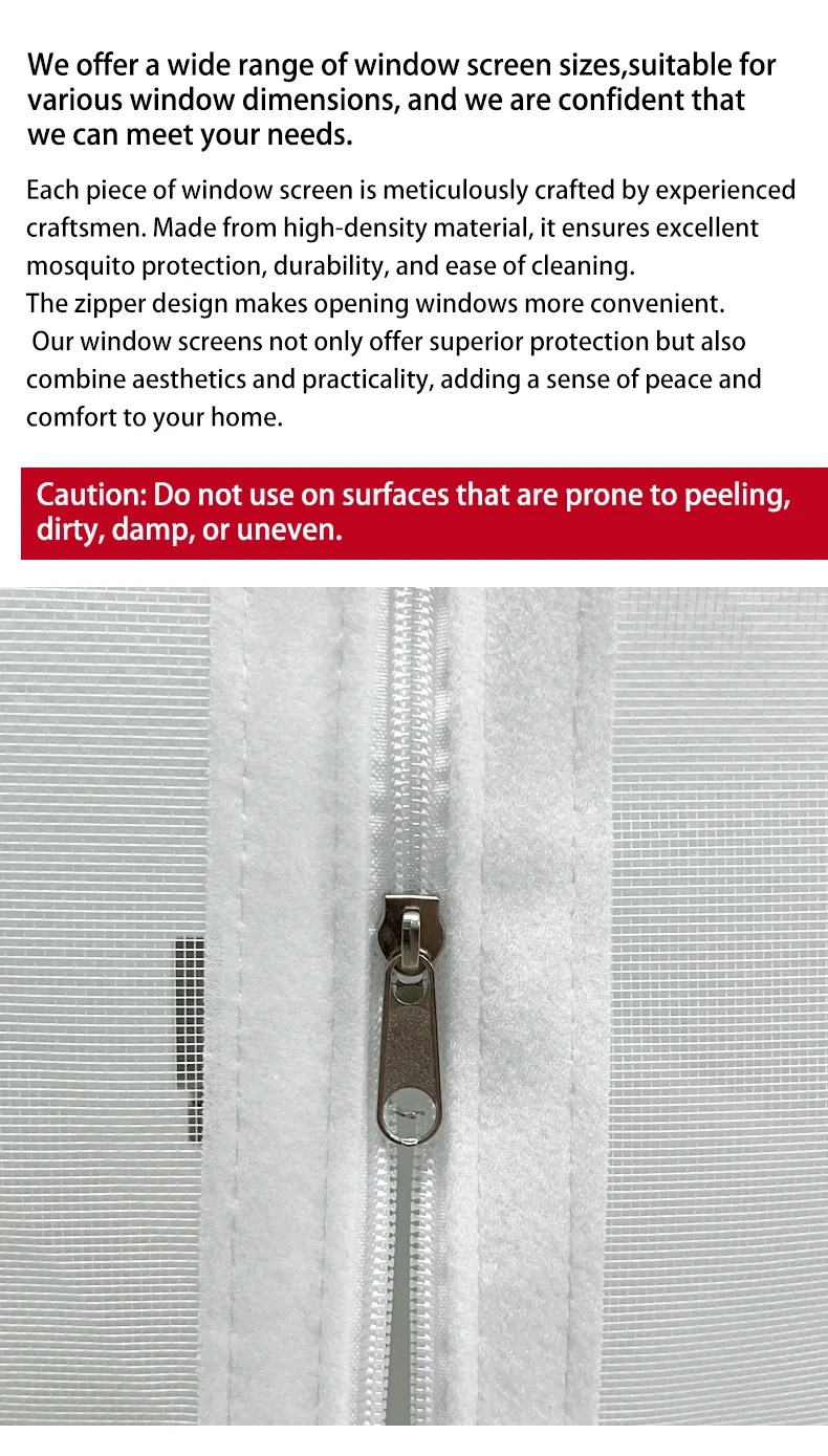 Zippered No-Drill Self-Adhesive Window Screen, Easy Mosquito and Insect Protection for Living Rooms and Bedrooms
