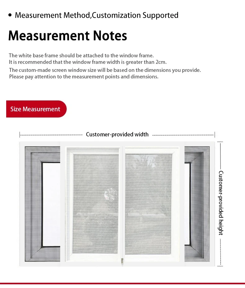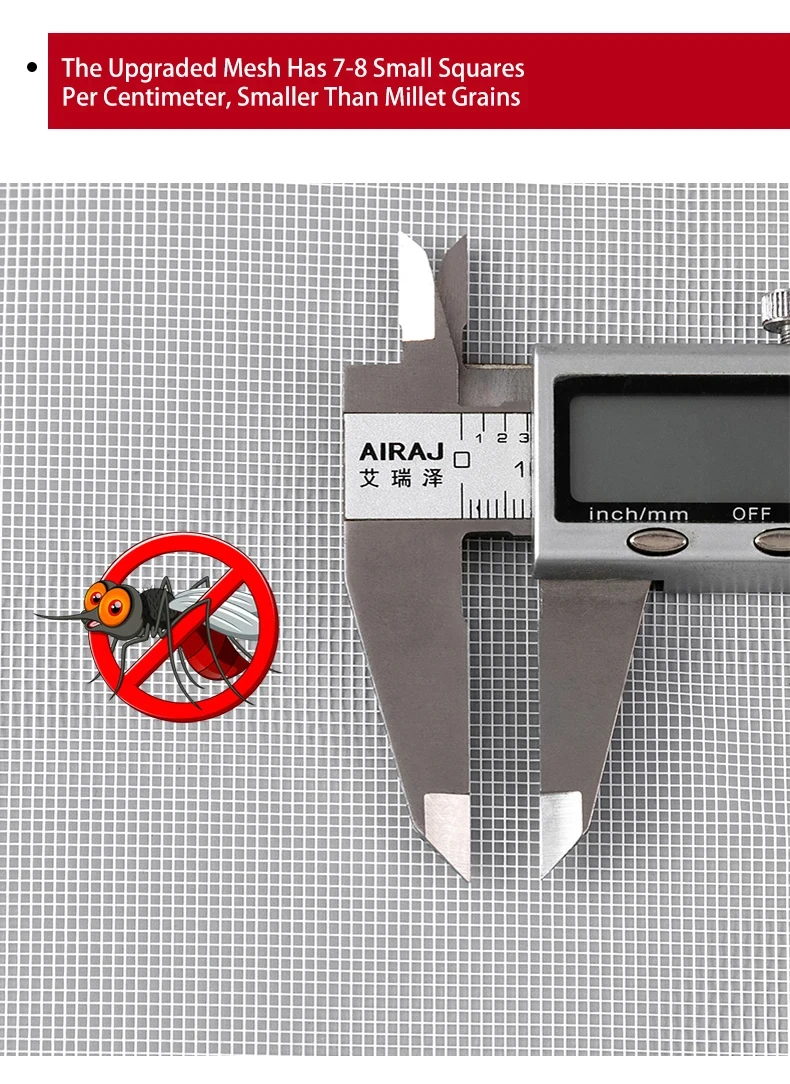 Excellent quality, the hold on the frame is very good through an adhesive tape with a velcro-like side that allows for unlimited putting on and taking off of the mesh. Take measurements carefully to avoid errors.