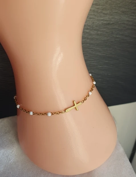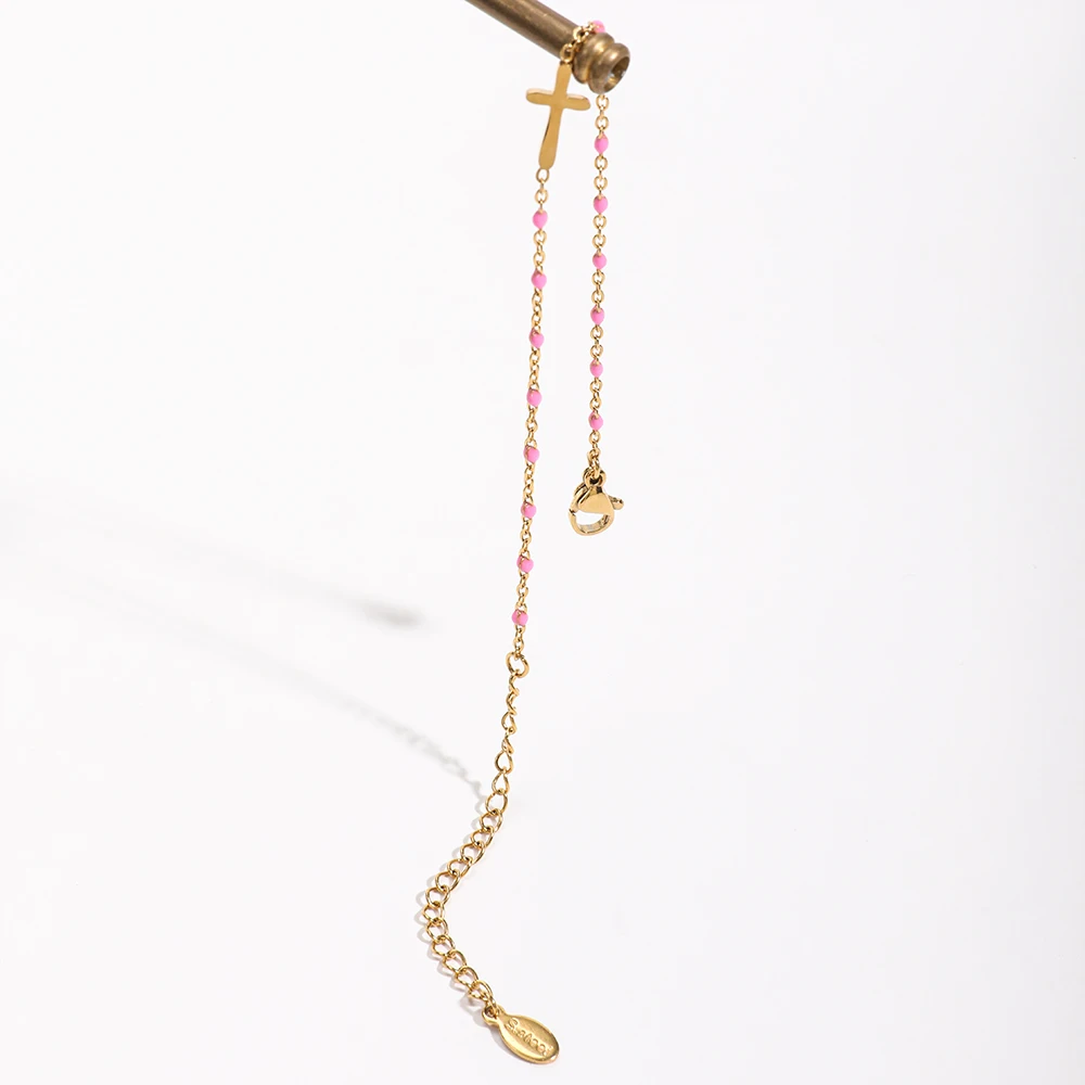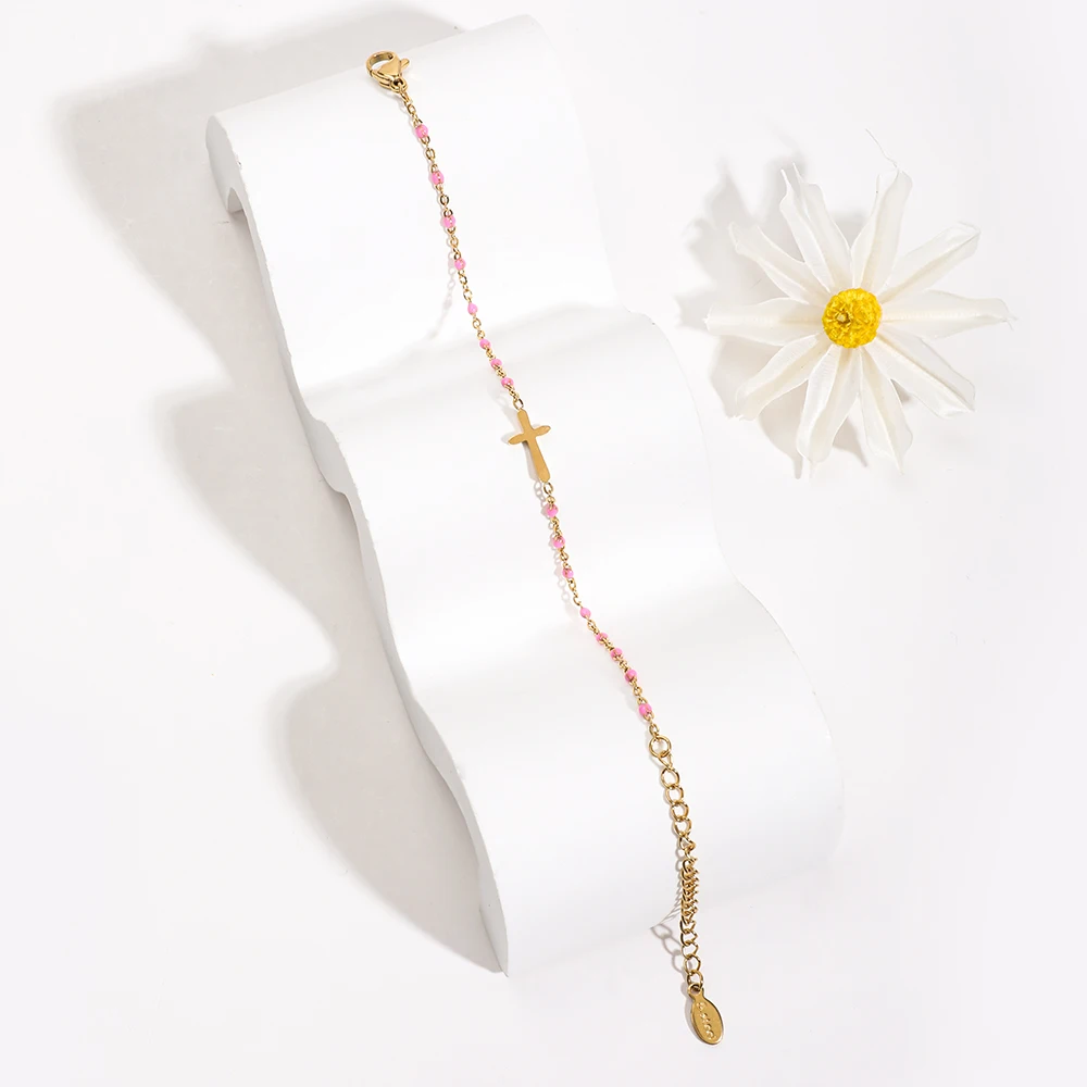 20 reviews for ZMZY Girls Boho Thin Chain Stainless Steel Bracelets For Women Gold Color Peach Pink Cross Charm Beautiful Gift