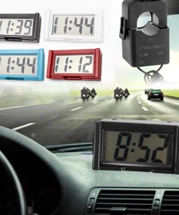 Mini Digital Clock Decorative Large Screen Car Clock Electronic Adhesive Self Ornament Dashboard Mini Car Accessories Clock