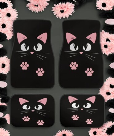 2/4pcs Car Anti-skid Mats,Car Carpets,Cute Cartoon Cat Printed Car Floor Mats,Suitable for The Front and Rear Seats of Most Cars