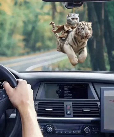 Fun Car Pendant Hanging Ornament with Chain Realistic Animal Cat-Shaped Rearview Mirror Hanging Decor Car Interior Accessories