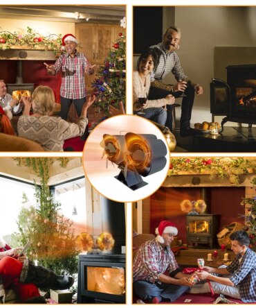 Wood Stove Fan Heat Powered Dual Silent Motors 4 Blades Non-Electric Heat Fireplace Fan with Bracket and Magnetic Thermometer