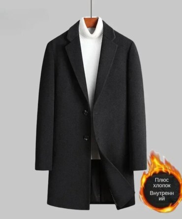 Wool 54.3% autumn and winter new men’s woolen coat medium and long suit collar cotton thickened woolen coat men’s coat