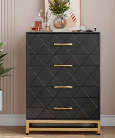 Wooden Dresser for Bedroom, Dressers & Chest of Drawers with 4 Drawer, Wood nightstand for Storage and Organization