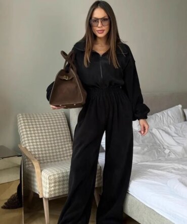 Zekye Woman Clothing New Fashion Long-sleeved Jumpsuit Women’s Casual Semi-open Elastic Waist Jumpsuit Elegant Woman Jumpsuit