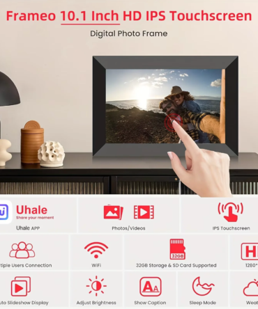 10.1” WiFi Digital Photo Frame, IPS Touch Screen, 32GB Storage, Gravity Sensor Support, Photo/Video Sharing via Secure Free Apps