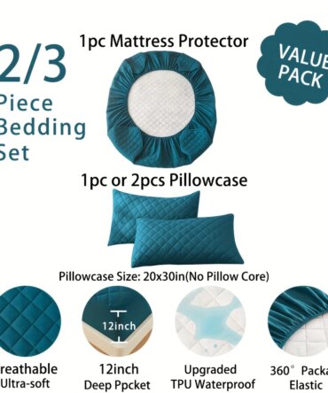 2/3pcs High Quality Waterproof Mattress Protector Set With Ultra-Soft Envelope Pillowcase Closures, Noiseless Fitted Sheet