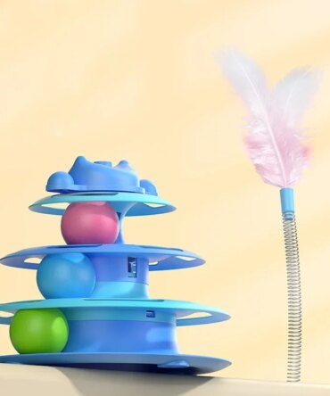 1pcs 4-Layer Feather Cat Turntable With Fun Toy Ball And Playing Stick – Interactive Toy For Cats