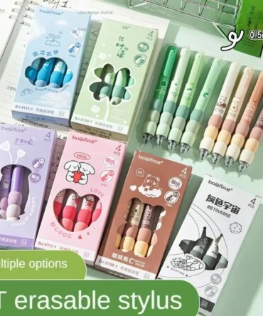 4PCS/Box Soft Cloud Grip Erasable Press Gel Pen ST Tip Quick Drying Ballpoint Pen Student 0.5mm Black Ink Office Accessories