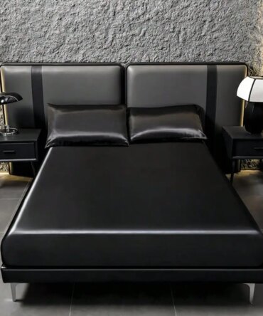 2/3pcs Luxurious Solid Silky Satin Fitted Sheet With Pillowcases For Soft And Comfortable Bedding,For Bedrooms And Guest Rooms