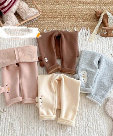 Winter Kids Girls Leggings Cotton Ears Plus Velvet Infant Baby Girls Tight Casual Elastic Waist 0-5Y Toddler Girls Basic Bottoms