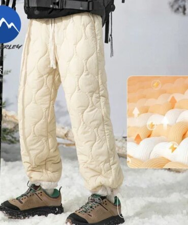 Winter Down Pants Mens Trendy Ski Waterproof Thick Fleece Warm Straight Cotton Trousers Womens Casual Cold-proof Padded Pants