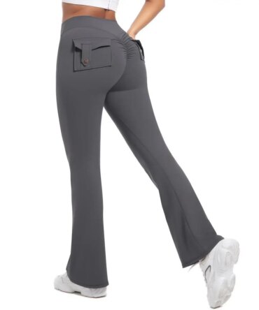 Women’s Yoga Flare Trousers, High-Waisted Tummy-Control Wide-Leg Trousers Outdoor Casual Leggings with Pockets, Gym Workout Trou
