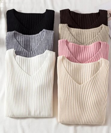 2025 Basic V-neck Chic Autumn Winter Pullover Women Female Knitted Ribbed Sweater Slim Long Sleeve Badycon High Quality Sweater
