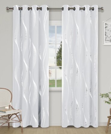 1pc High Precision Silver Embossed Wave Pattern Blackout Curtains for Blocking Light and Keeping Heat, Perfect for All Rooms