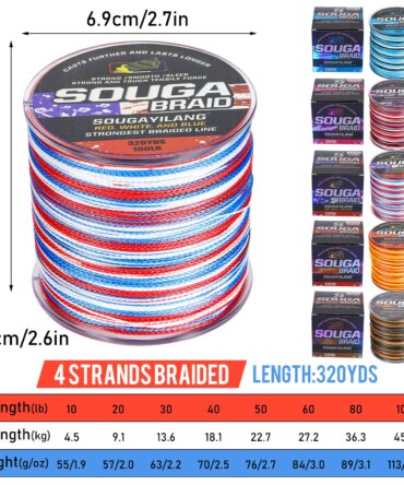 Sougayilang Braided Line 4X 100/300m 5 Color All for Fishing Line MaxDrag 66LB Multifilament PE Line for Saltwater Sea Fishing