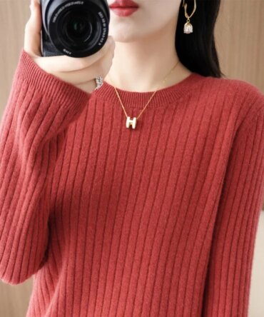 2025 Women Sweaters Autumn Winter Long Sleeve Pullovers O-neck Stripe Warm Pullover Korean Fashion Bottoming Shirts Loose Jumper