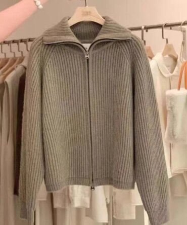 100% Merino Wool Women’s Lapel Zipper Cardigan Autumn Winter Thick Casual Fashion Knitted Cashmere Sweater