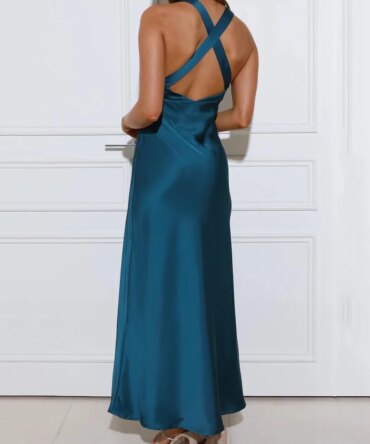 Silk Satin Dress for Women Backless Maxi Long Evening Dresses Elegant Party Birthday V-neck Robe for Wedding Guest Ladies