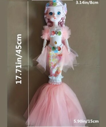45cm/17.72inch Mermaid Doll Girl Toy Blue Eyed Children’s Princess Doll Wedding Dress Doll,Christmas/Halloween/Thanksgiving Gift
