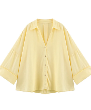 2025 Spring/Summer Trendy Women’s Blouses – Long Sleeve V-neck Solid Color Shirts Fashionable Office Wear