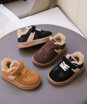 Boys’ plush sports shoes winter girls’ soft soled anti slip walking shoes, children’s casual versatile cotton shoes