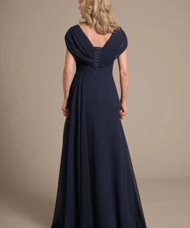Lace Appliqued Mother of The Bride Dresses Cap Sleeves Ruched Hi-Lo Evening Gown for Wedding V Neck Pleated Formal Evening Dress