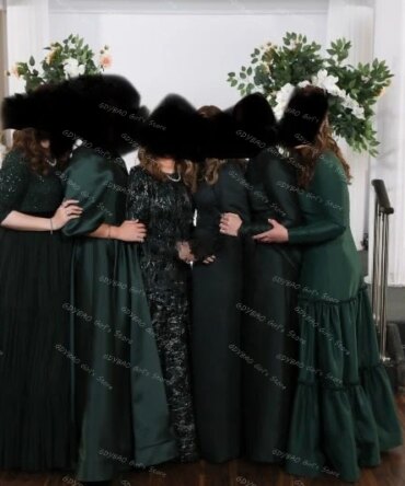 Dark Green Satin Bridesmaid Dress for Women A-line Round Neck Balloon Sleeve Prom Evening Gown Long Custom Wedding Party Dress