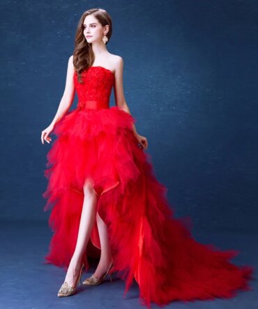 New red ruffle lady girl women princess bridesmaid banquet party ball dress gown
