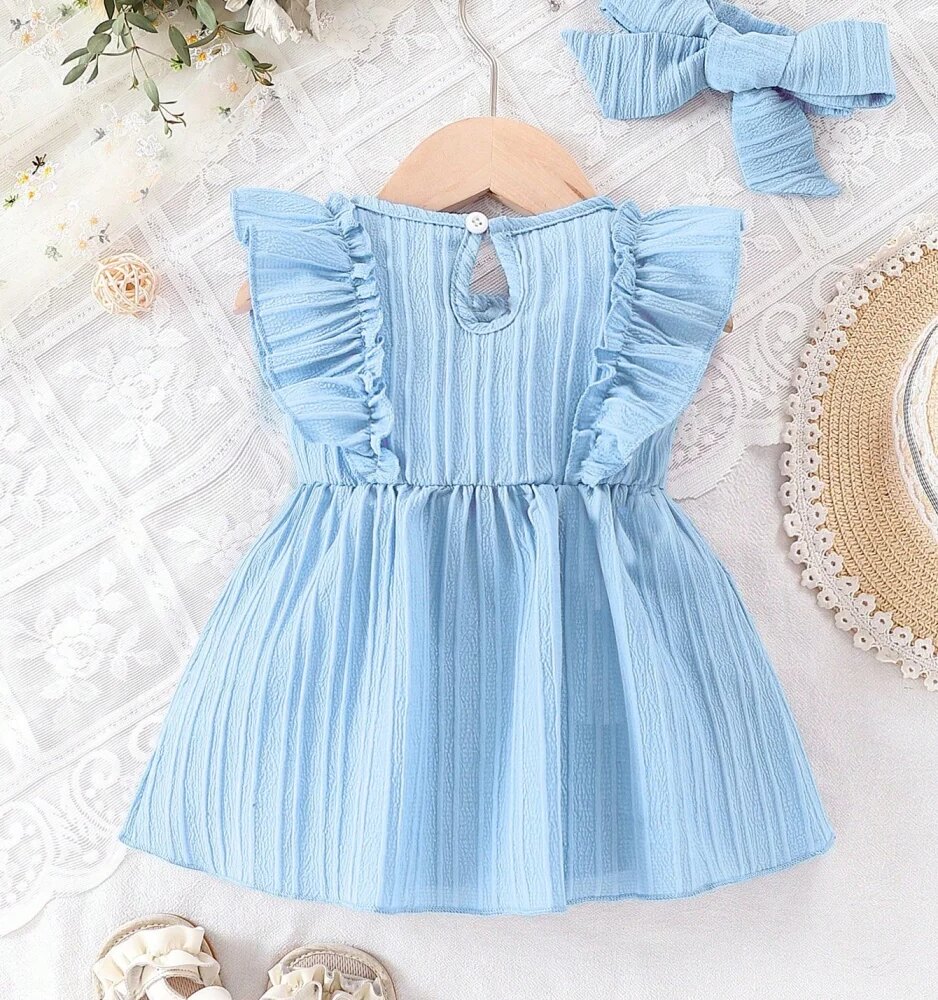 Baby girl Summer Blue dress with Ruffled Edges and Bow, Sweet and Cute Style Dress suitable for 0-3 Year old Cute Baby girls