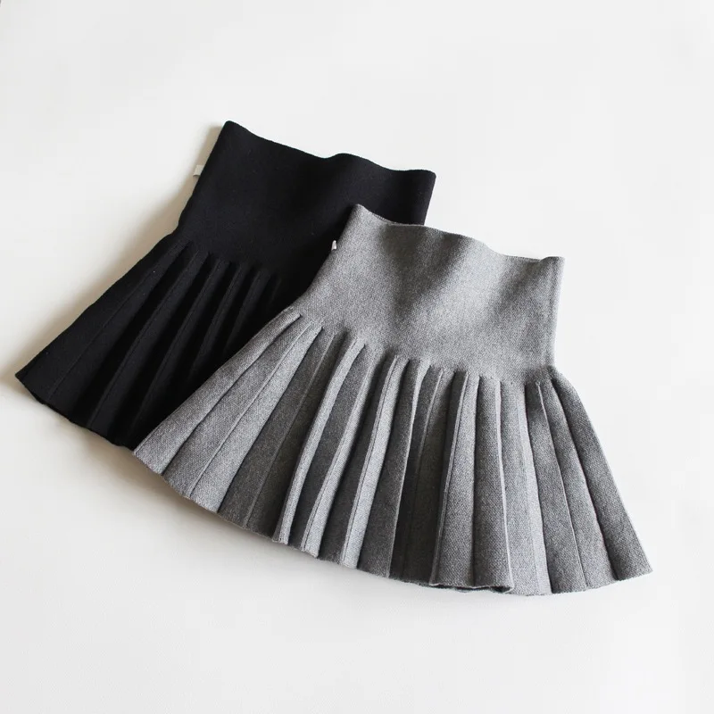 1pcs Girls Knit Skirts Baby Autumn Winter Princess pleated Skirts Childrens Student High Waist Mini Tutu Skirts Kids Solid Dress