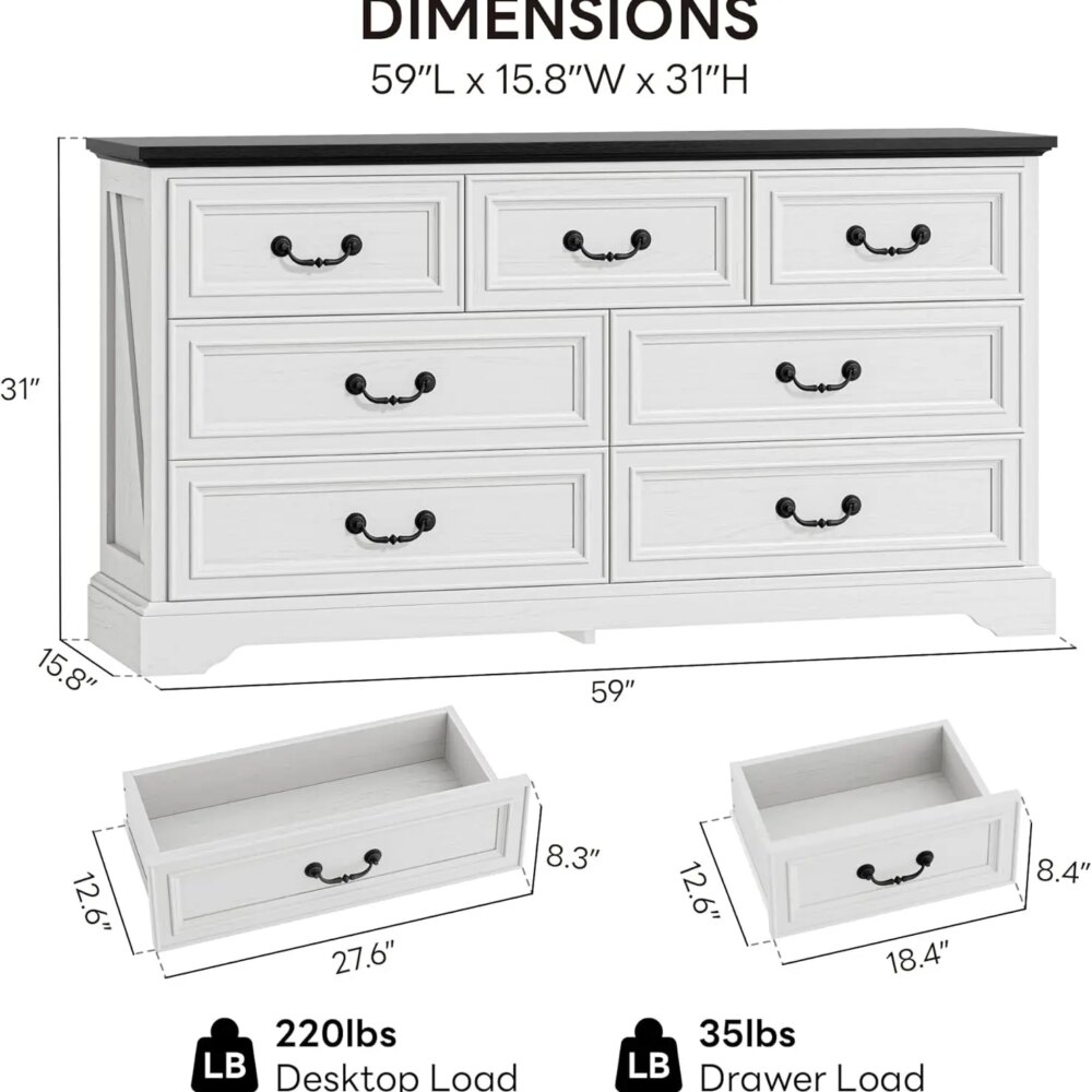 LIKIMIO Farmhouse 7 Drawer Dresser for Bedroom, 59″ Wide Dresser Drawers with Storage,Rustic Wooden Chest of Drawers for Bedroom