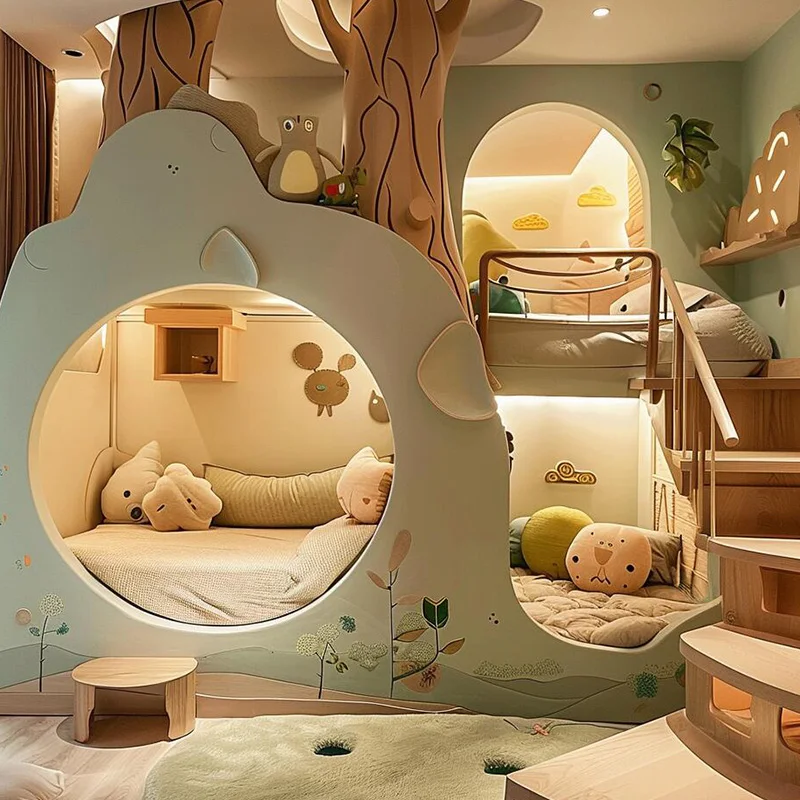 Luxuce Normal Kids Beds Wooden Safety Green Loft Design Children Beds Princess Modern Style Camas Infantiles Furniture Home