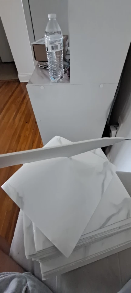 The tiles arrived quickly, very light, the base is very soft, so not suitable for flooring. Since I bought them for the wall, it’s fine. It’s difficult to remove the film; I recommend using a needle or the tip of small scissors to peel it off more easily.