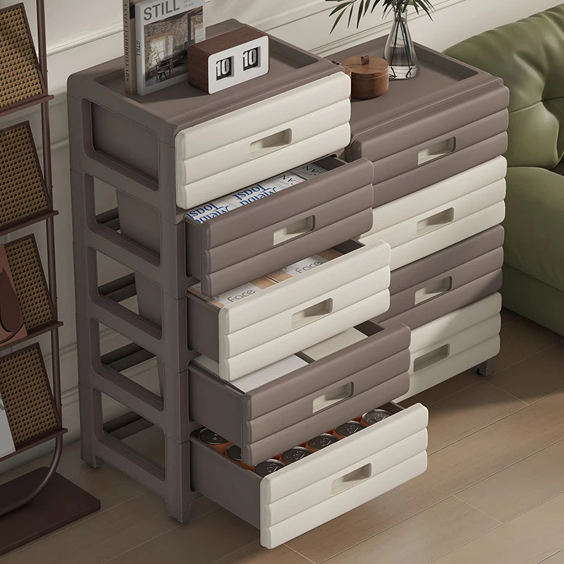 13.78 Inch Wide Drawer Storage Cabinet,3-6 Tier Rolling Mobile Organizer with Wheels,Gray/Brown Options for Living Room/Bedroom
