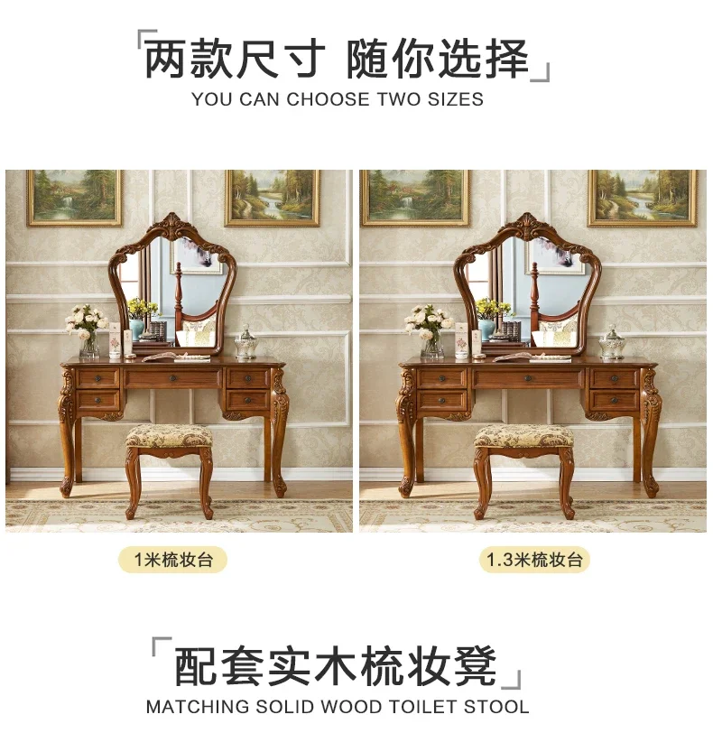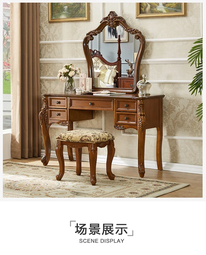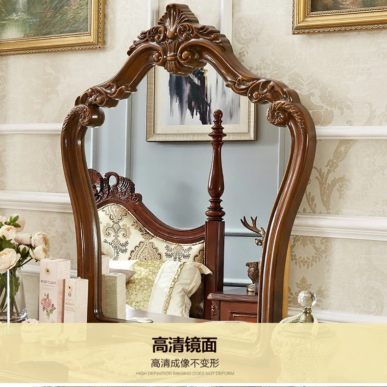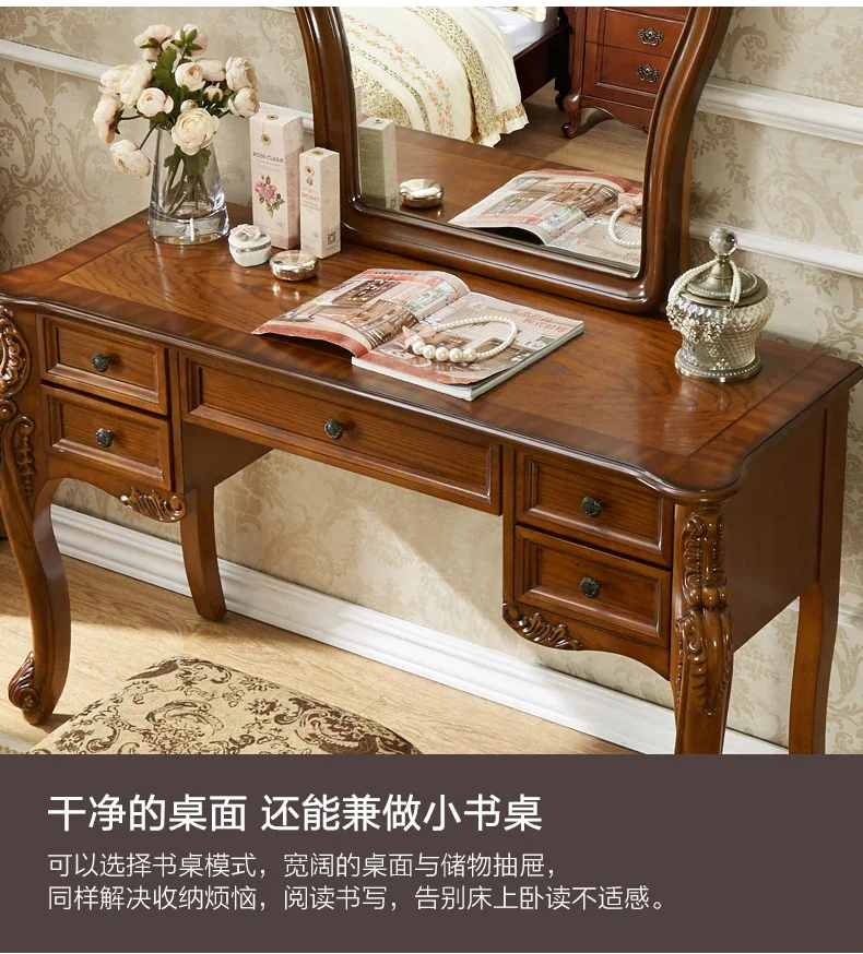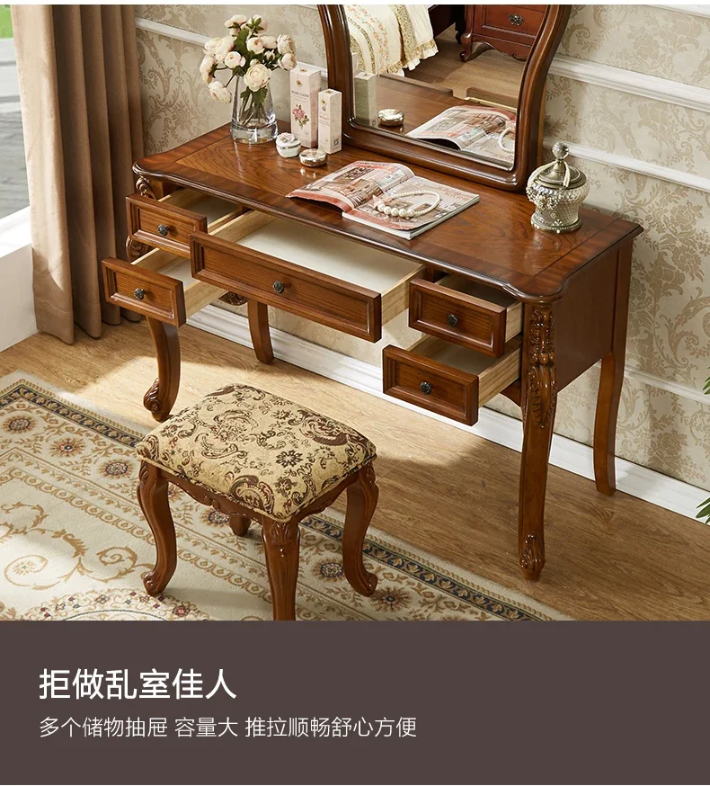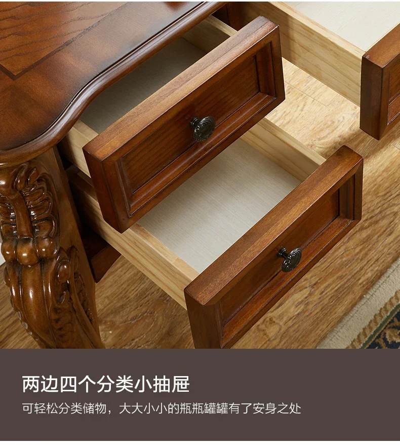 2024 American Dressing Table Bedroom Vintage Upscale Makeup Table European Solid Wood Carved Dresser Makeup Mirror Combination