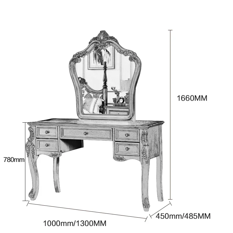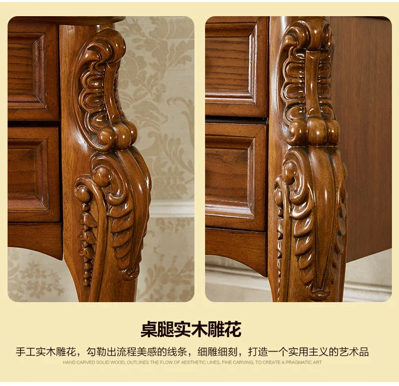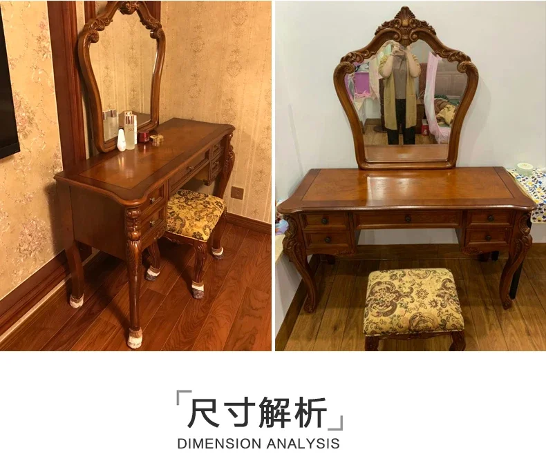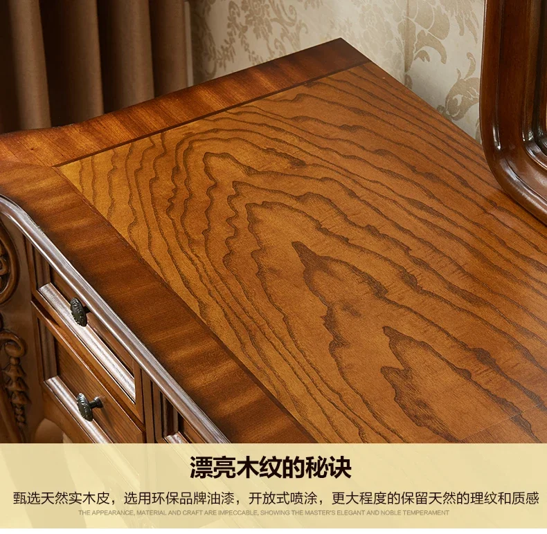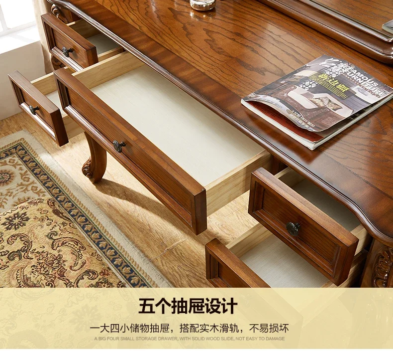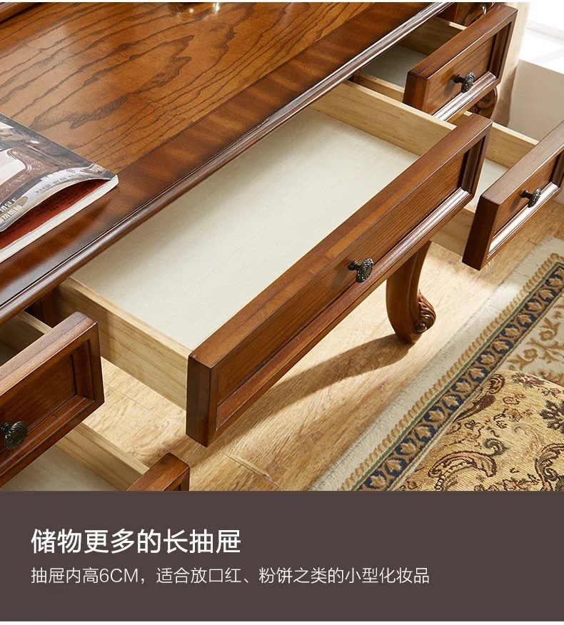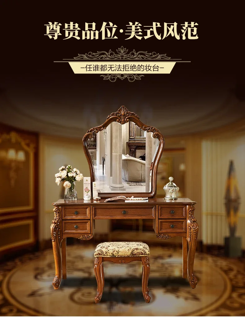 2024 American Dressing Table Bedroom Vintage Upscale Makeup Table European Solid Wood Carved Dresser Makeup Mirror Combination