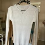 It’s a creamy color with a yellowish tint~ I guess it’s margarine color haha. The neckline is slightly different from the photo, but it’s soft and pretty.
