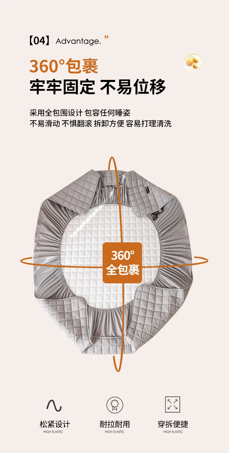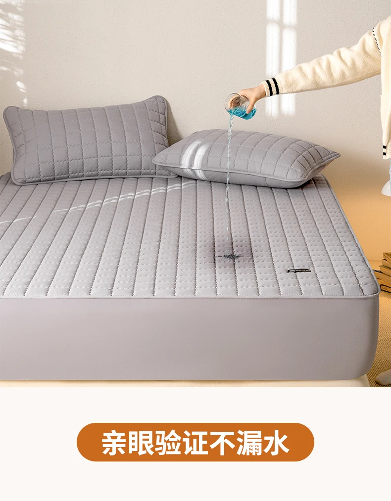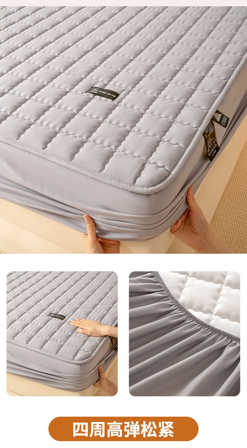 2025 new solid color soybean antibacterial padded cotton waterproof fitted sheet mattress protective cover without pillowcase