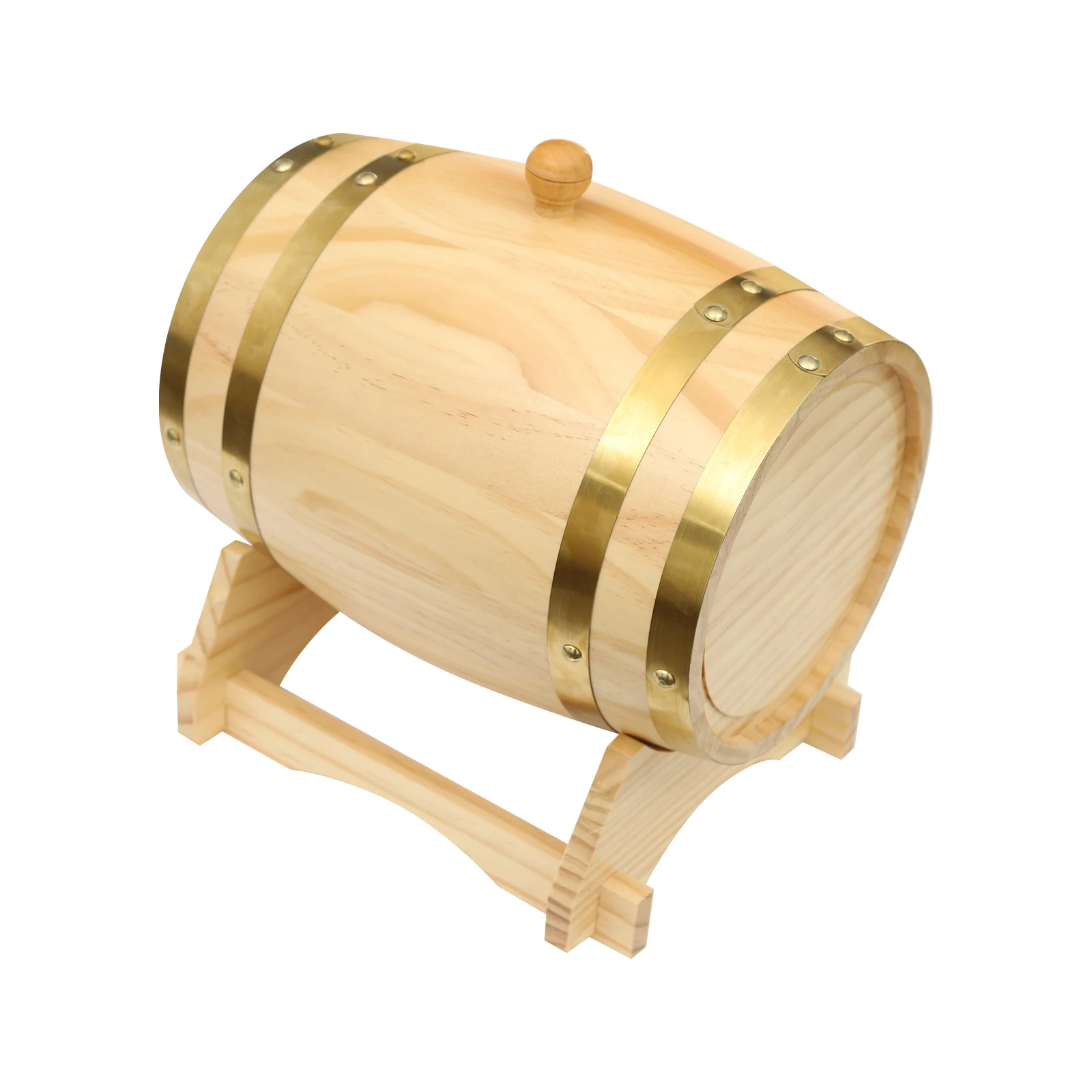 3/5L Wine Barrel with Stand, Wood Barrel with Faucet for Whiskey and Wine, Home Decor Hotel Vintage Wooden Coffee Barrel