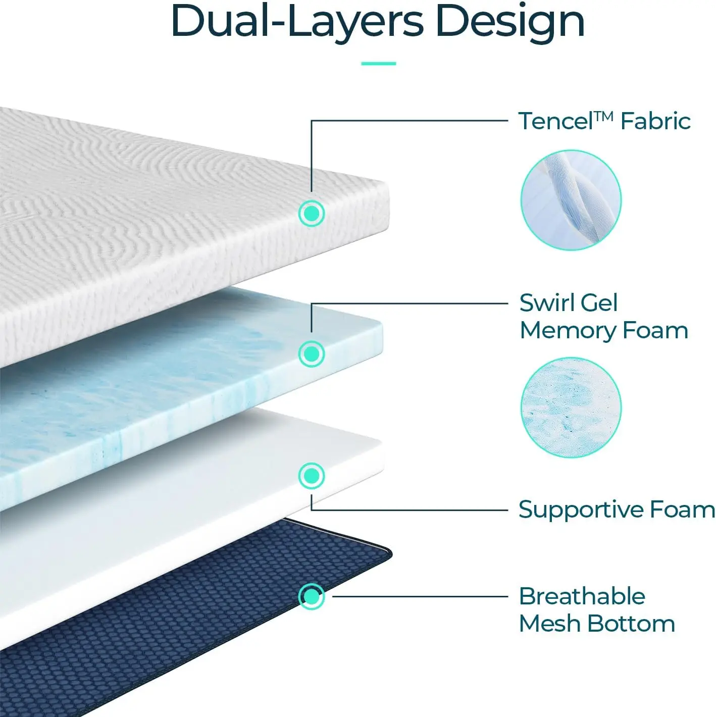 - Gel Memory Foam Mattress Topper: Gel mattress topper twin includes actual cooling gel beads to dissipate heat away faster and regulate your body temperature, it gives a great blend of comfort and cooling to transform your sleep experience