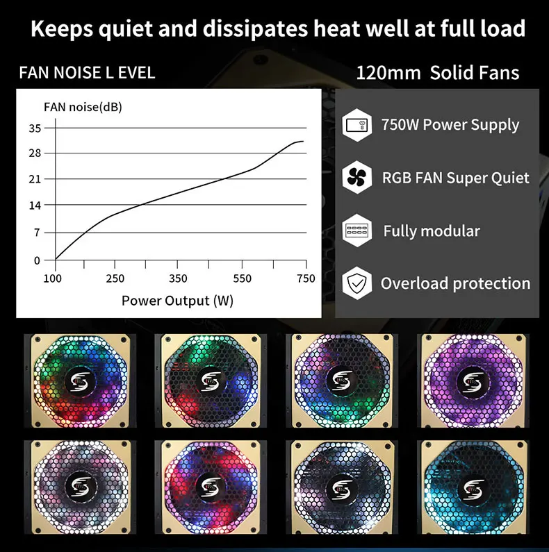 750W ATX Power Supply Full Modular 80 PLUS Bronze Computer Gaming Power Supplies Support Dual CPU