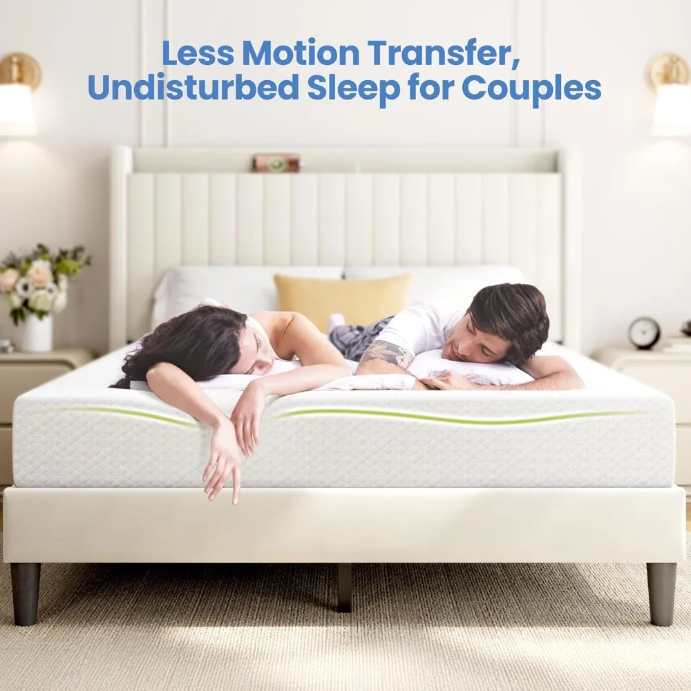 • Cooler & Fresher Night’s Sleep: Infused with cooling gel on the upper two layers to draw heat away, this bed mattress helps you quickly sink into a deep, restful sleep. Moreover, the green tea infusion adds a subtle, refreshing scent, creating a calming sleep atmosphere