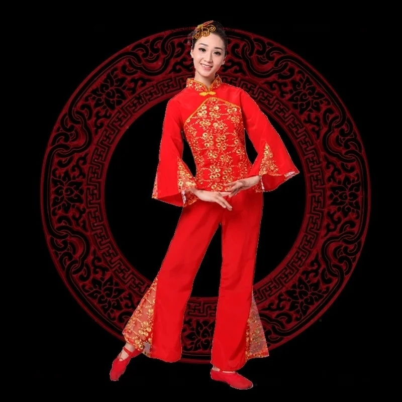 ancient chinese costume women folk dance lion costume for woman hanfu women new year Fan Yangko Stage clothing dragon Younger