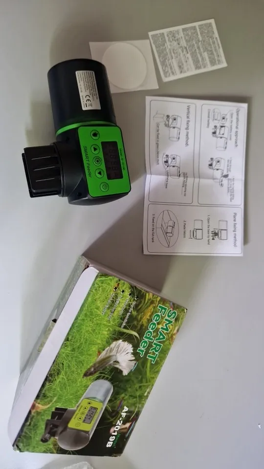 It arrived very well packaged. It’s bigger than I expected but still I am satisfied with it. It is easy to program and you can feed the fish once to four times a day. For me, it’s sensational and very much in line with the description.