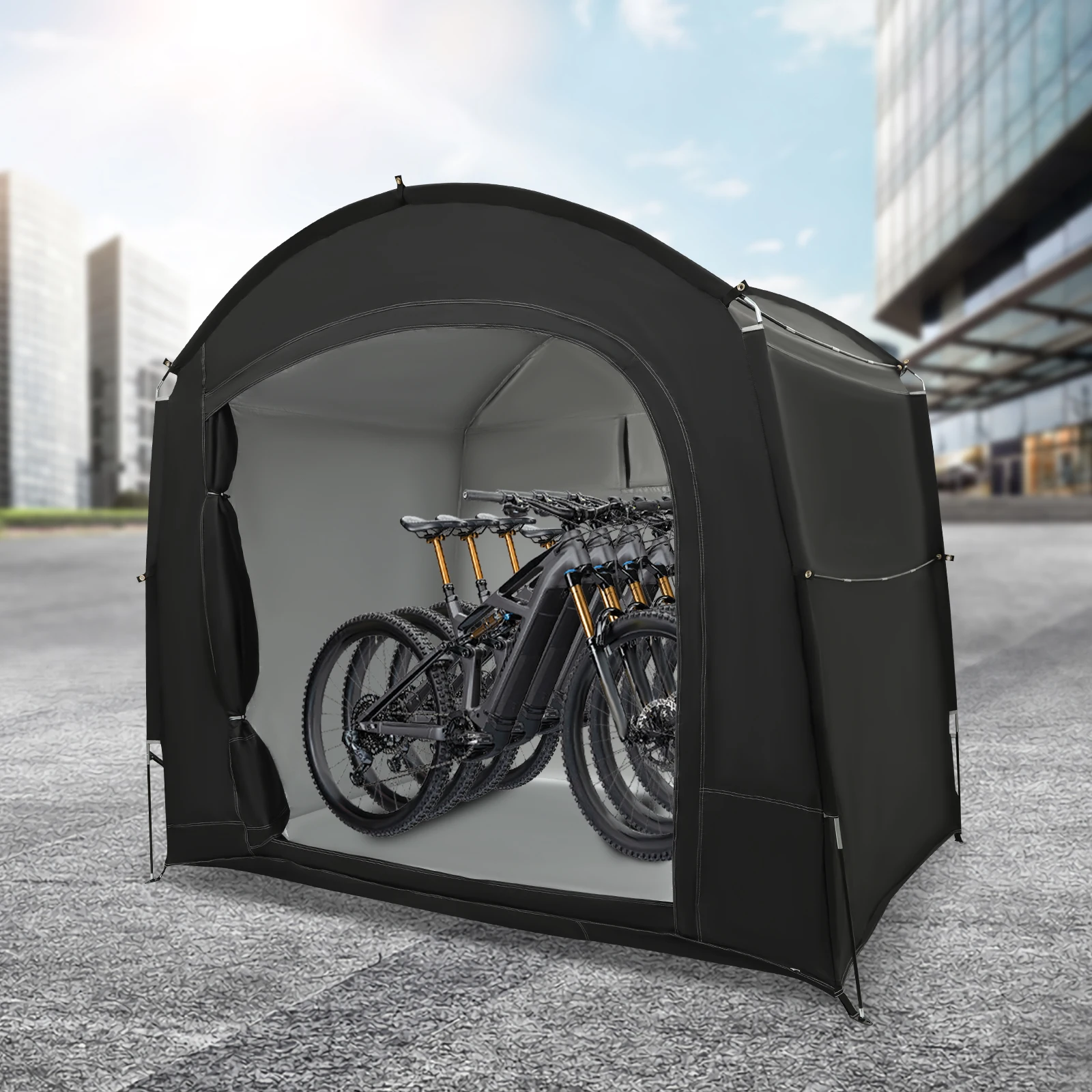 Thoughtful Design: It has a ventilation window on the back that promotes air circulation, prevents overheating, and ensures a reasonable storage environment for your bike. In addition, the interior space (86.61*59.06*72.83 inches) is larger enough to store about 3-4 bikes.