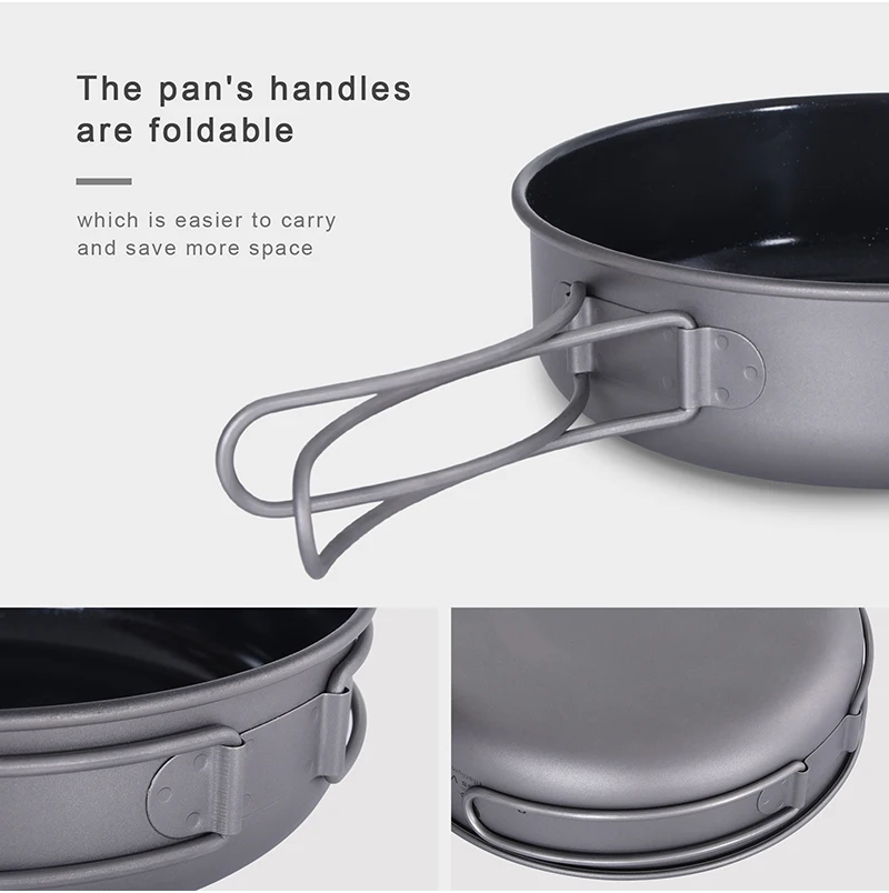 Boundless Voyage Titanium Non-stick Frying Pan with Ceramic Coating and Folding Handle Outdoor Camping Picnic Plate Dish