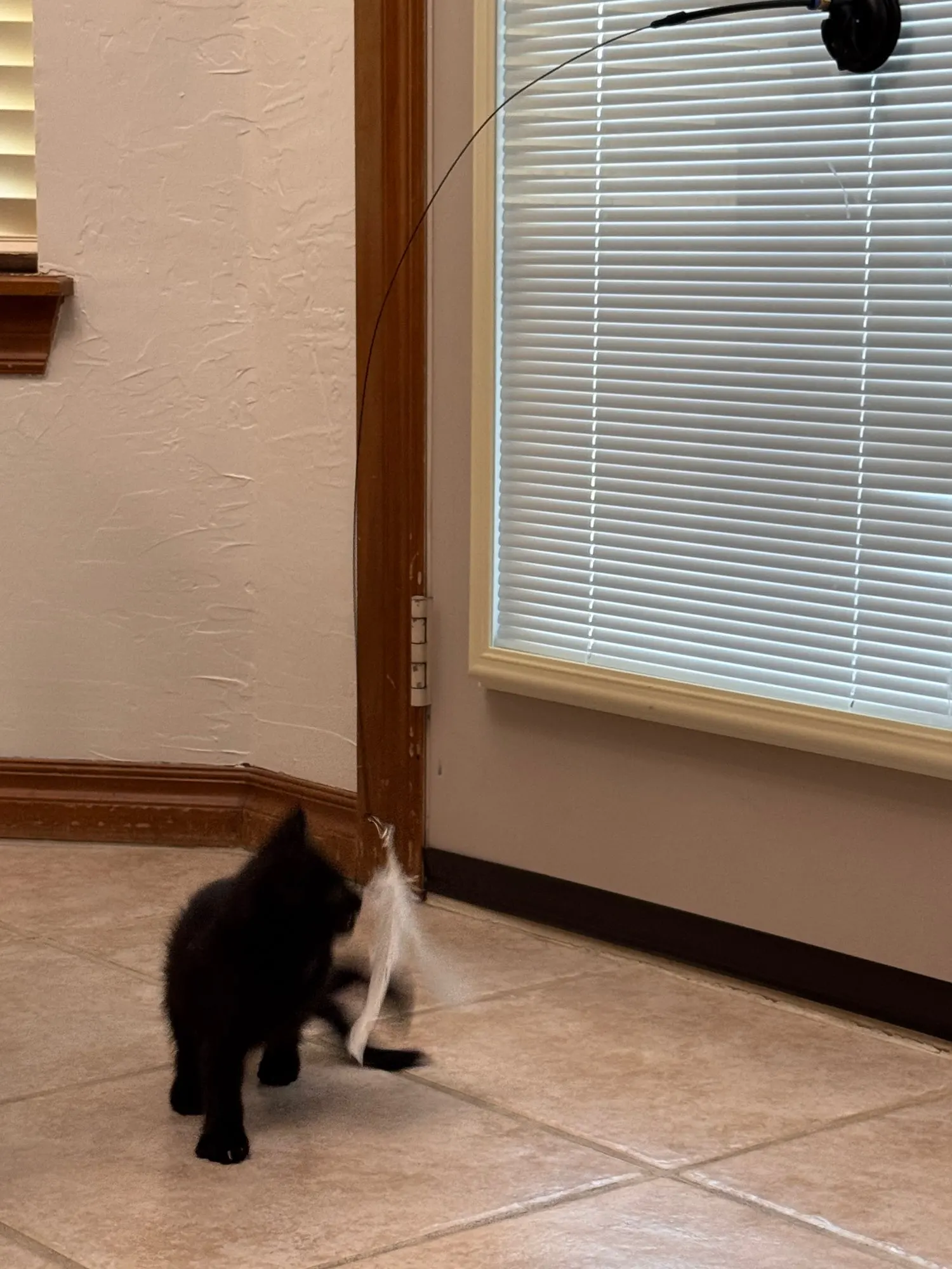 Hours of play for our kitten. She loves it! Good product! One minor issue is that y he suction cup doesn’t stick to our tile floor, but it works with our door. So no complaints.
